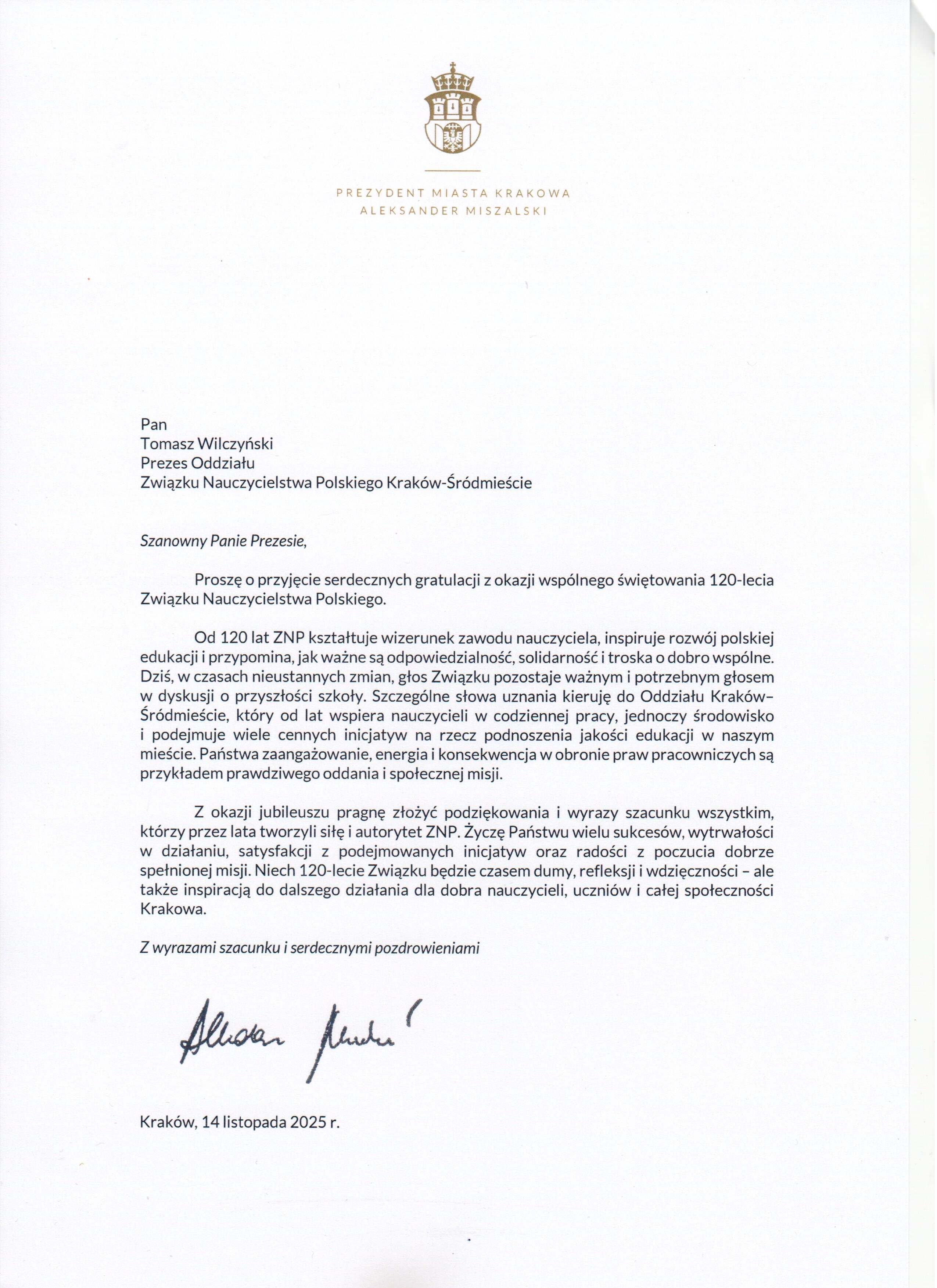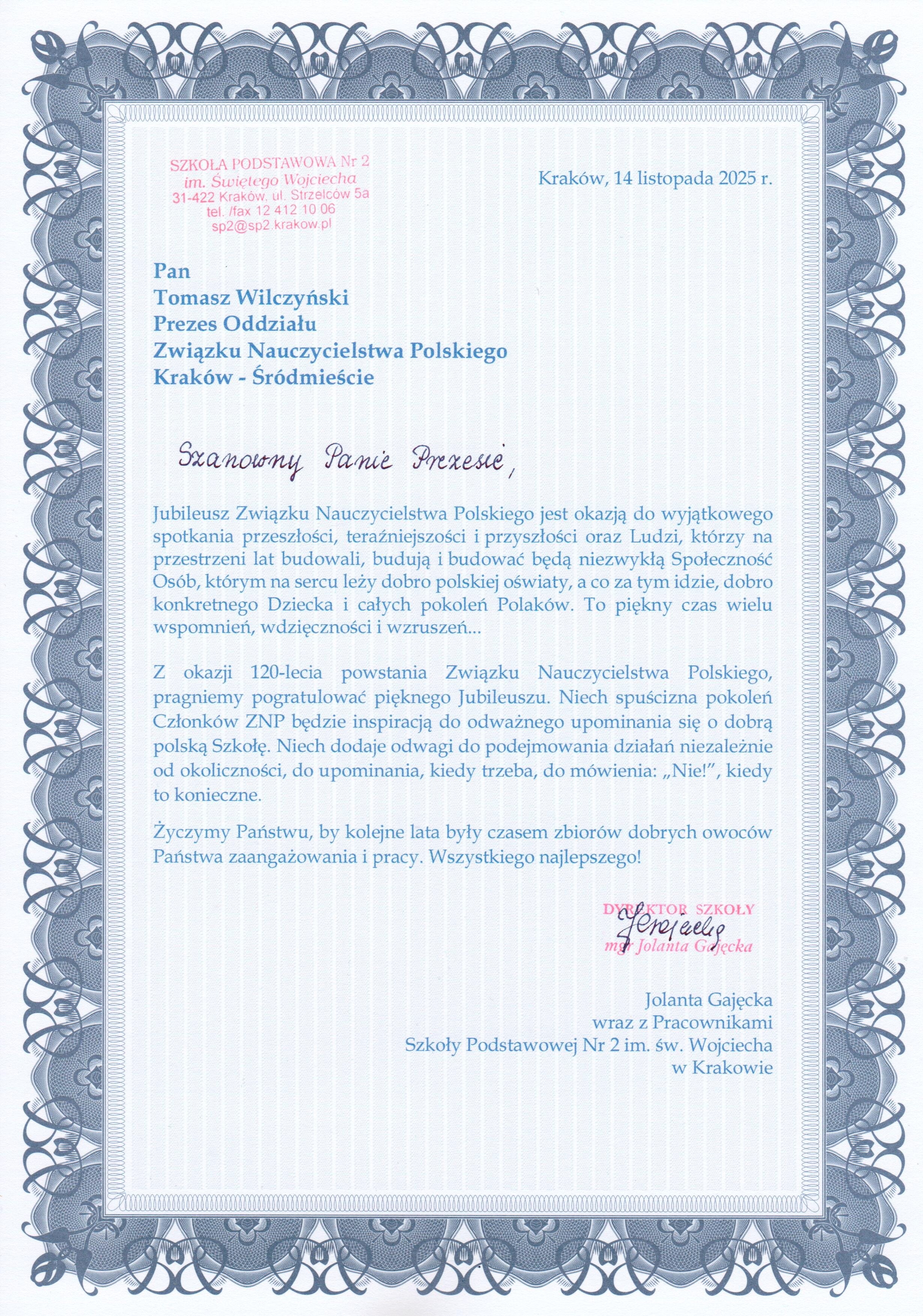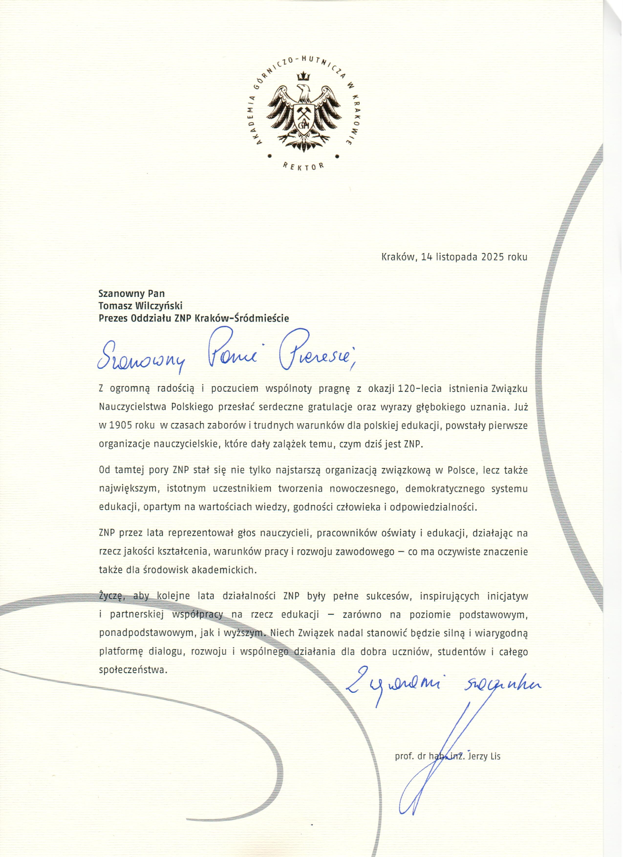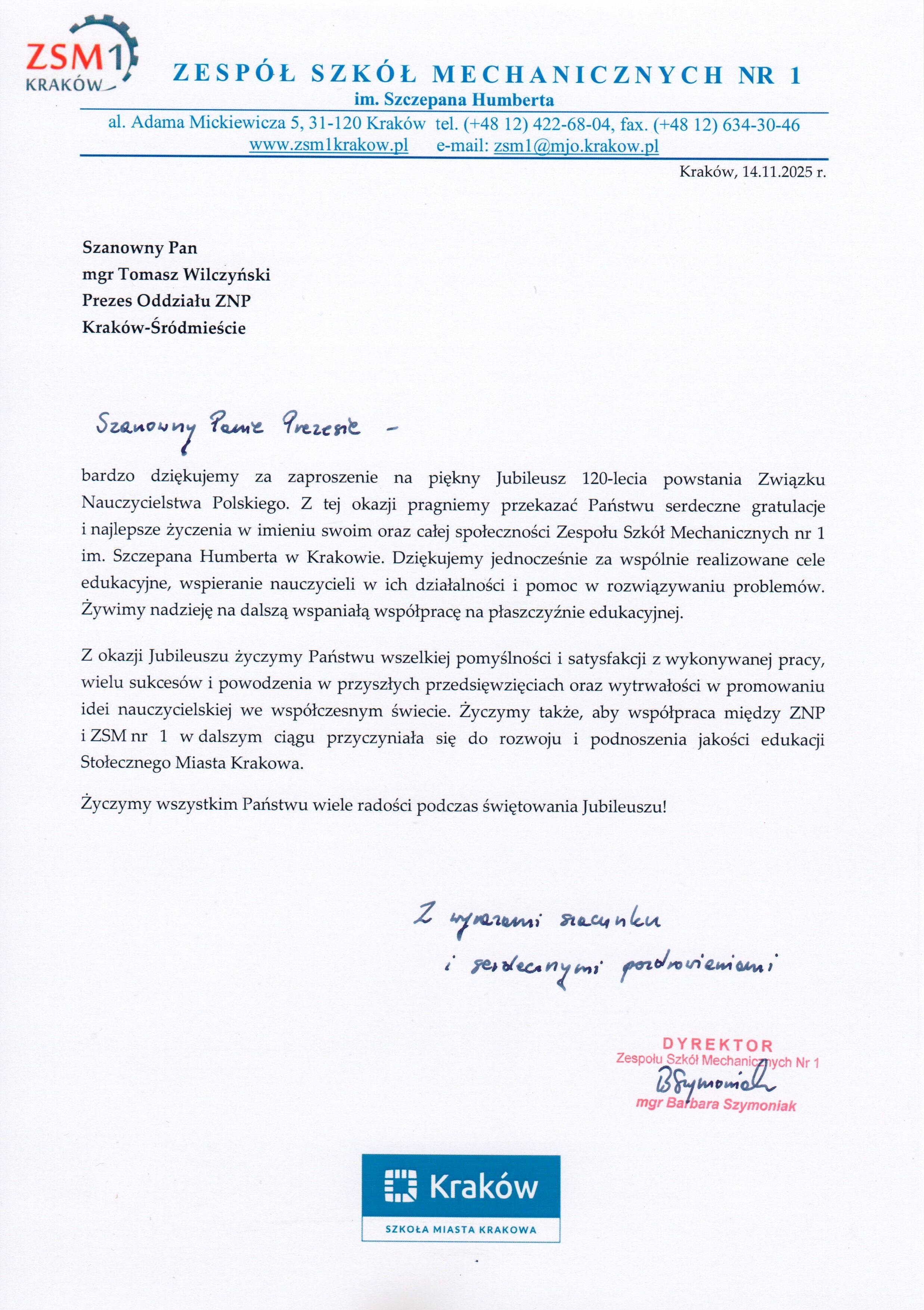 Słowa uznania od naszych Partnerów z okazji 120-lecia Związku Nauczycielstwa Polskiego